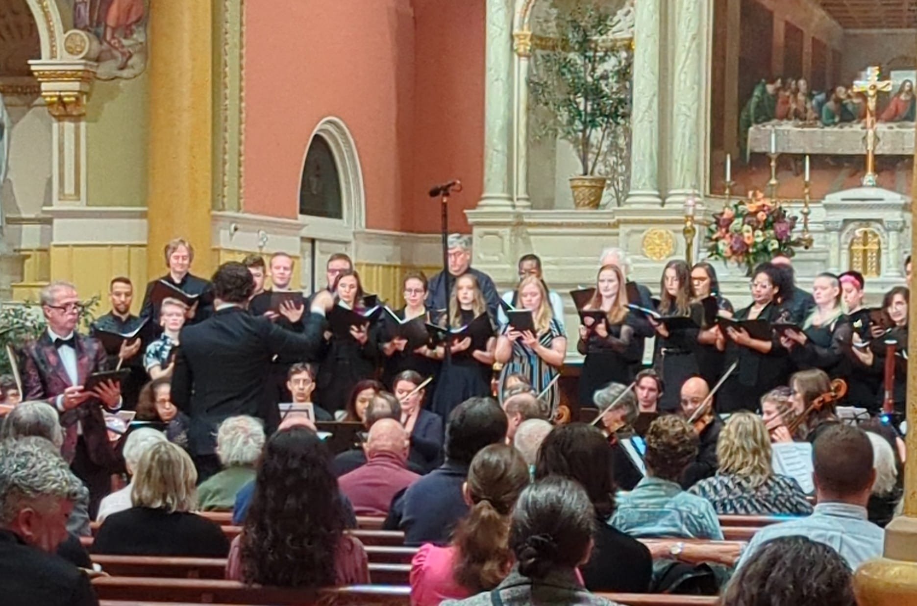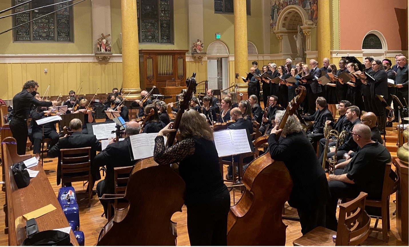 Saint Cecilia Church, Boston, MA: The concert consisted of 3 parts, beginning with early music by the Pandora Consort and original music by singer-songwriter Rachel Marie. The second section included original music by Javíer Márquez and Kelvyn Koning performed by the TMC Choir and Wood Harbor Orchestra. The third part featured the 12-movement Missa Misceo for choir and orchestra, which blended 6 Masses by 5 composers: Libby Larsen, Kelvyn Koning, Amy Beach, Mary Casiello, and Rachel Burckardt.