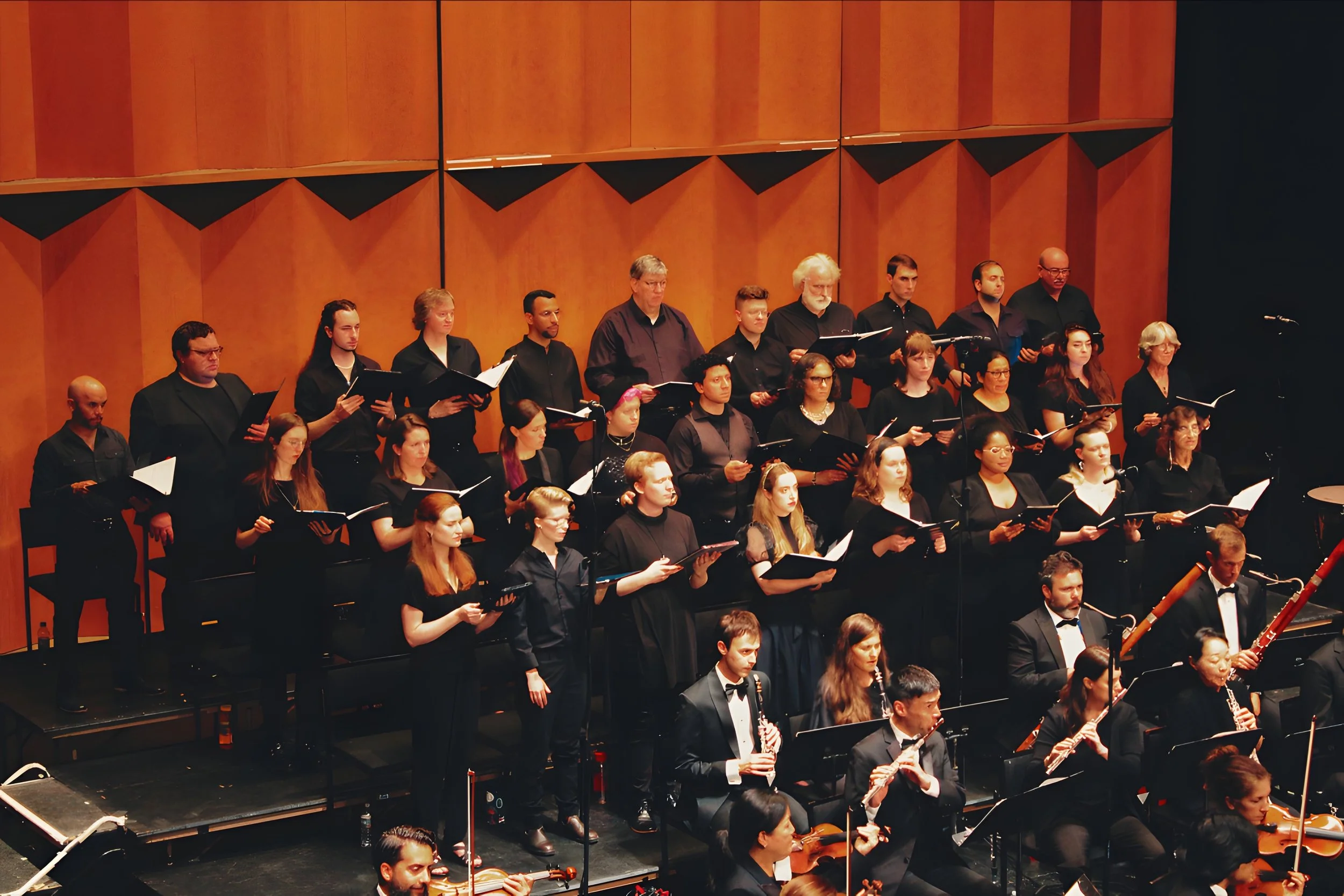 SUNY Purchase Performing Arts Center, Purchase, NY: The TMC took to the road to the world-class Performing Arts Centerat SUNY Purchase in Westchester County, NY, just north of New York City. The TMC Chorus and tenor soloist Ciaran Nagle joined forces with the NY-based Modus Operandi Orchestra under the direction of Justin Bischof, along with the jazz trio, the Revolutionary Snake Ensemble featuring saxophonist Ken Field. In addition to Rachel Burckardt’s Mount Auburn Requiem, the program included other works by Rachel, including “For Elaine and Steve,” “Ascendance” (for orchestra and jazz combo), and “Heal Me.” “...Ms. Burckardt’s sacred music and her secular concert music are a seamless blend embodying eclectic styles, genres, and crossover.” -NY Concert Review