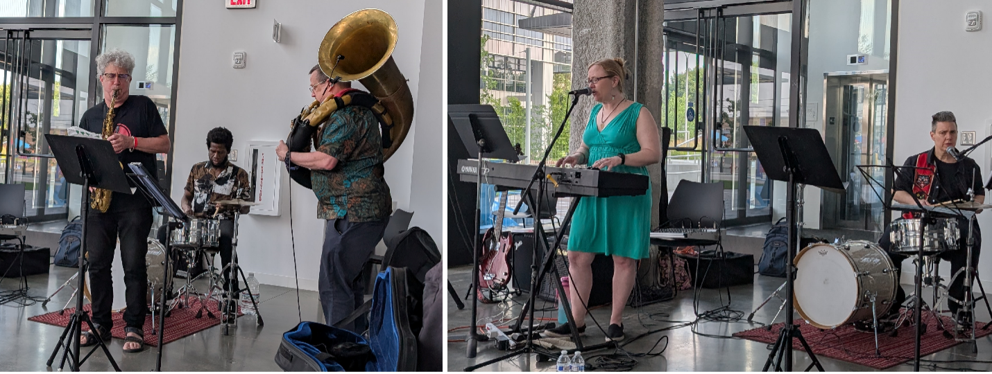 Boynton Yards, Somerville, MA: The TMC was asked to provide music for the Taste of Somerville, a unique way to experience the dining scene in the city, with ticket proceeds benefiting the Somerville Homeless Coalition(SHC). For this event, TMC collaborators the Revolutionary Snake Ensemble, Three At Home, and jazz pianist Diana Fischer performed a mix of jazz, popular music, and original songs.